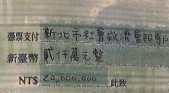 每年农历年前,一位善心人士都以“无名氏”名义捐2千万给新北市。(图片来源:台湾《联合报》)