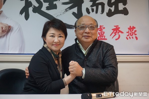 胡志强为卢秀燕首次站台,夸卢是台中市政好驾驶。(图片来源:台湾“东森新闻云”)