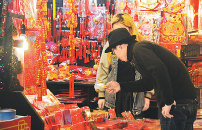 农历新年将至,为了方便民众置办年货,台北传统年货大街——迪化街2月1日火热开卖。本次年货大街热卖的时间为14天,商家准备了糖果、海鲜、干货、饮品等各种产品供台湾民众挑选,现场红灯笼及各种装饰,呈现着喜气洋洋的气氛。图为商家在准备商品。(柴逸扉 摄)