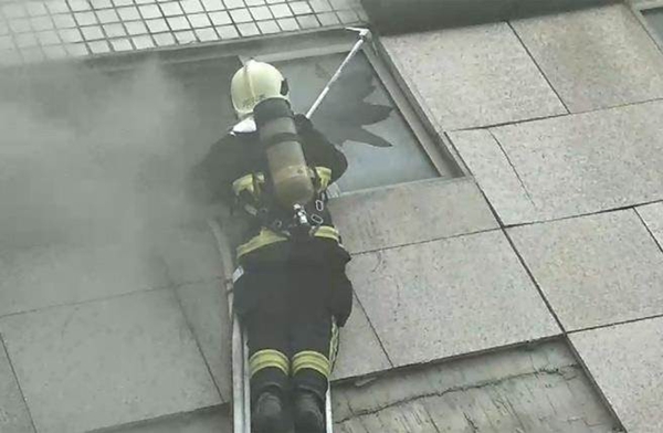 云门翠堤疑起火,救难人员破窗。(图片来源:台湾“中时电子报”)