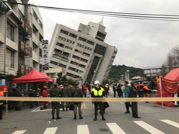 中国台湾网2月7日讯 中国地震台网正式测定:2月6日23时50分在台湾花莲县附近海域(北纬24.13度,东经121.71度)发生6.5级地震。据台湾“中时电子报”报道,云门翠堤大楼倒塌,倾斜45度,传出至少有10余人受困,不过现场传出地下室起火闷烧,浓烟窜出,搜救困难,搜救人员正破窗想办法进入。