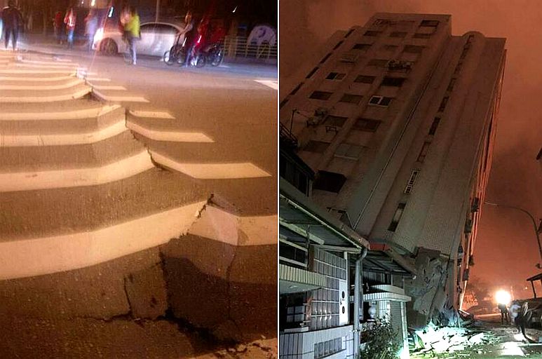 台湾花莲地震现场。(图片来源:台湾《中时电子报》)