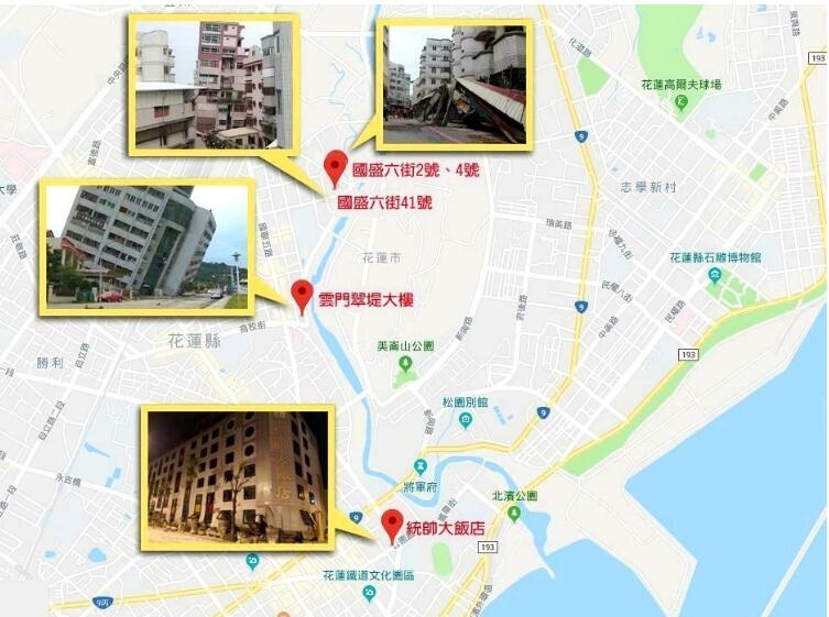 台湾土木技师公会花莲办事处长陈水生说,经土木技师初步勘查,在昨晚强震倒塌的4栋大楼中,统帅饭店和云门翠堤大楼的1楼都是骑楼,另外国盛六街2、4号的白金双星大楼及国盛六街41号的吾居吾宿大楼,楼高分别是6楼和9楼,但1楼都设计成停车场。对此他表示,这4栋建物的共通点就是,1楼的柱子多、墙体少,且又位于米仑断层带附近,一遇到强震,脆弱的1楼支撑不住上方楼层的重量,当然就“下跪”。