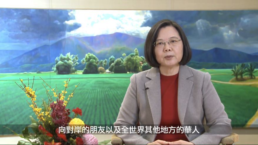 蔡英文称,“在这里,我要借着这个机会,向对岸的朋友以及全世界其他地方的华人,说声新年恭喜”。(Facebook截图)
