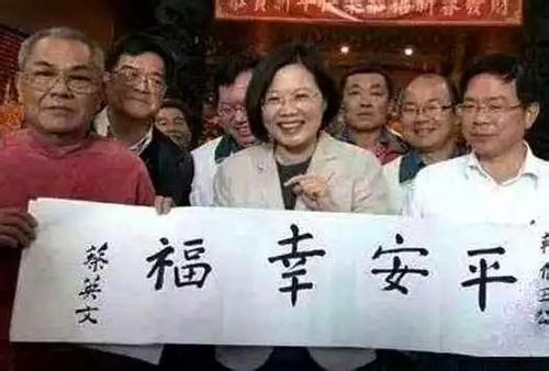 蔡英文书法“平安幸福”曾被不少岛内网友嘲笑像小学生字体。(台媒图)