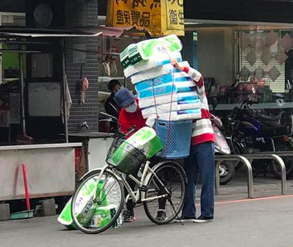 从奔驰到自行车全在疯卫生纸 台媒:这是台湾最夯风景!