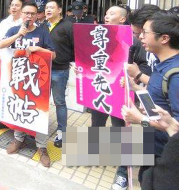 翁绍辉表示,国民党青年部今天就是要表达另一种声音,并要对“自由台湾党”下战帖,希望他们出面,大家来理性辩论,不要像孬种一样躲在楼上,而且他们不认同“中华X国”,却要“中华x国”的警察保护,实在非常讽刺。