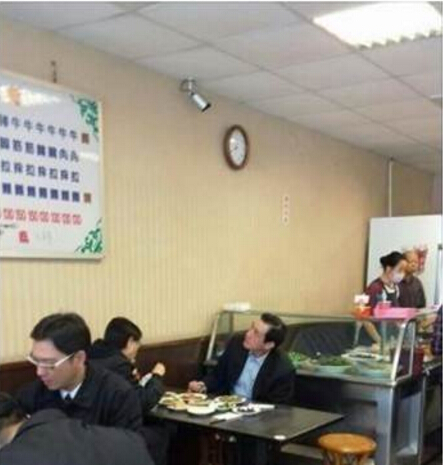 网友捕获马英九夫妻到高雄一家牛肉面店用餐,马英九看似在张望价目表。(图片取自台媒)