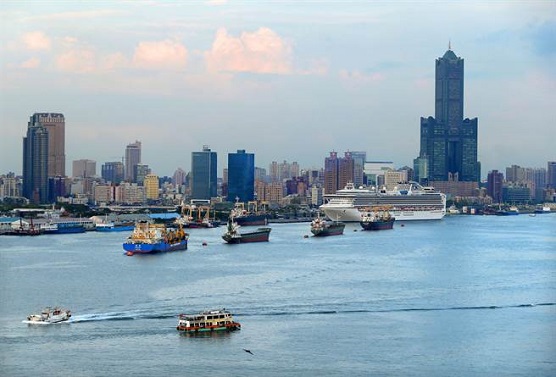 从旗津灯塔远眺高雄一港口港湾和包括高雄地标85大楼等城市景观。(图片来源:台湾“中时电子报 ”)