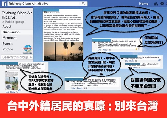报道说,住在台中的外籍居民2016年成立脸书社团,成员大多是在台定居的外籍人士,近来因空污严重,已有人搬离台湾。还在台湾的,也因空污计划离开台湾。