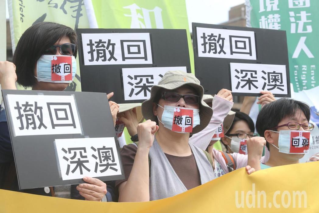 撤回深澳联署已破五万人,环团日前到“行政院”前陈情,要求撤回深澳案。(图片来源:台湾《联合报》)