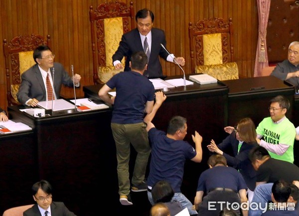 中国台湾网4月20日讯 据台湾“东森新闻云”报道,台当局“立法院”20日又爆战事!为拼军人年改“付委”,民进党团一早7点就至议场集结“捍卫主席台”,国民党团则进攻发言台杯葛,双方爆发冲突,全案混乱中仍顺利进入“委员会”审查阶段。然而会中国国民党“立委”杨镇浯、林为洲欲跳上主席台时反遭苏嘉全推落,蓝营痛批“输家拳”“暴力阿全”,要求苏嘉全出面认错道歉,并将提案送“纪律委员会”。