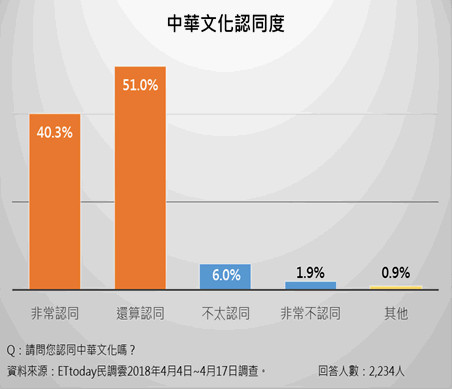 岛内某民调显示,高达91.3%受访者认同中华文化。(图片来源:ETtoday新闻云)