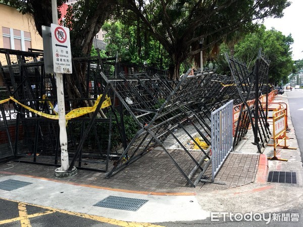 台“立法院”正门堆满层层拒马。(图片来源:台湾“东森新闻云”)