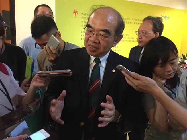 吴茂昆遭媒体围住询问“关切”高中校长事宜,没想到吴茂昆不为所动,直接一句“我听不到”。(图片来源:台湾《中时电子报》)
