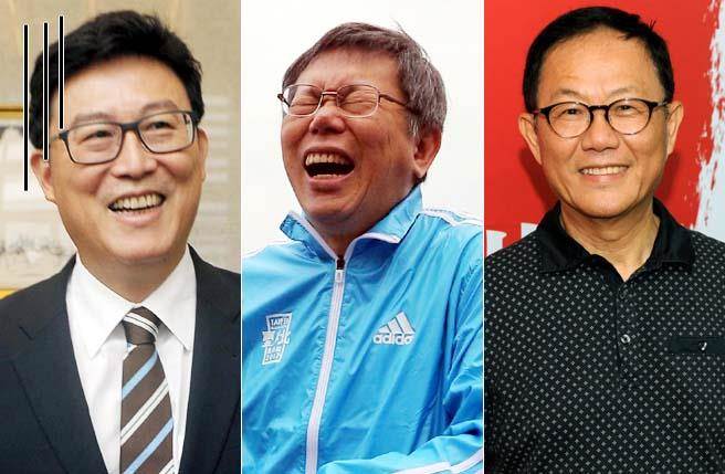 民进党“立委”姚文智(左)、现任台北市长柯文哲(中)、国民党台北市长参选人丁守中(右)。(图片来源:台湾《中时电子报》)
