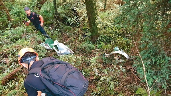 搜救人员在新北瑞芳山区找飞机残骸。(图片来源:台湾《联合报》)