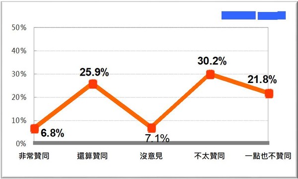 民调显示,在20岁以上的台湾成年人中,有33%的人基本上赞同蔡英文领导台湾的方式,52%的人不赞同;不赞同的人比赞同的人多达19个百分点;另一方面,强烈不赞同的人有22%左右。和上个月相比,赞同蔡英文领导台湾方式的人下降6.5个百分点,不赞同的人上扬4.4个百分点。这显示,蔡英文声望在执政满两年时虽明显提升了7.2个百分点,如今却又在短短一个月内再度蒸发6.5个百分点,回到先前较低迷的民意支持状态。台湾民意基金会认为,这似乎显示当前蔡英文声望挥发性强,声望起伏易受短期特定施政表现的影响。