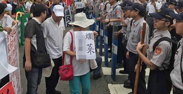 蔡英文在台中市有数个参访行程,反年改团体已做好沙盘推演。图为去年7月蔡英文在台中市林酒店参访时,警民对峙情形。(图片来源:台湾《联合报》)