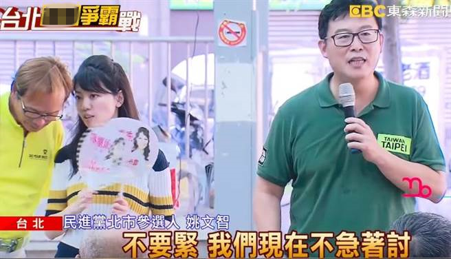 有网友翻出绿营北市议员高嘉瑜跟姚文智站台的画面,只见高嘉瑜不断闪躲,让网友笑翻。(图片来源:台湾《中时电子报》)