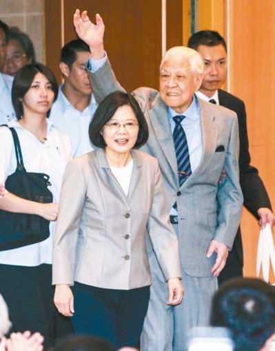 2016年,李登辉(前右)接受专访,对蔡英文(前左)就任后的表现颇有微词。 (图片来源:台湾《联合报》)