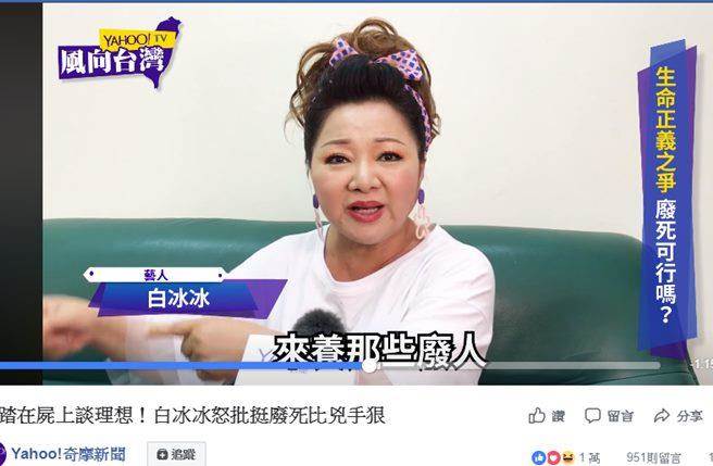 台艺人白冰冰怒批废死比分尸凶手更狠 上万网友点赞