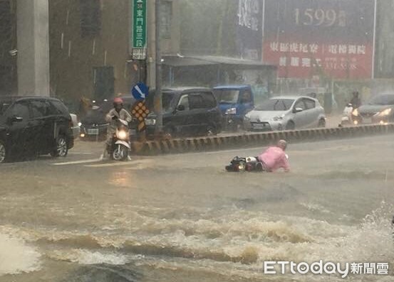 暴雨袭台南,造成全市20个行政区都淹水的灾情。(图片来自台媒)