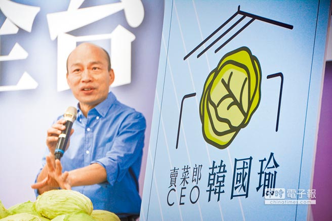 韩国瑜公布竞选主视觉,图样上半部斗笠与正中的高丽菜构成“高”字形代表高雄。他强调,高丽菜是农民从土里种出来的,代表接地气、不忘根、始终和农友站在一起,也显示他有决心以高雄为集散地,让农产品、畜产品、花卉大量外销。