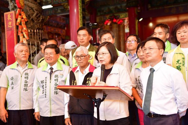 蔡英文日前为彰化县长魏明谷站台。(图片来源:台湾“东森新闻云”)