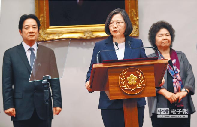赖清德(左)、陈菊(右)、蔡英文(中)。(图片来源:台湾“中时电子报”)