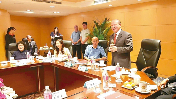 准高雄市长韩国瑜(右二)昨天拜会台湾义联集团董事长林义守(右一)。 (图片来源:台湾《联合报》)