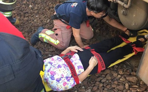 一老妪在台铁树林站落轨卡车底 幸无大碍已被救出送医
