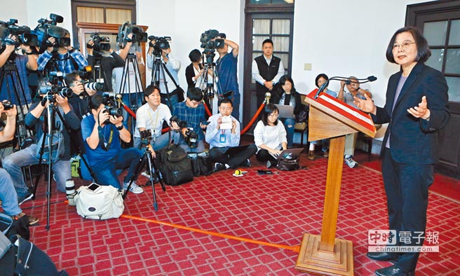 蔡英文6日在蔡办进行首度“回廊谈话”。(图片来源:台湾“中时电子报”)