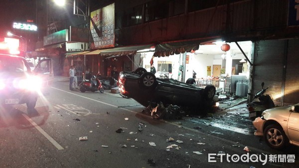 警方表示,庄某驾驶的轿车从博爱陆桥下来后,由西向东进入兴达路,但该路段限速50公里,少年却超速开到90公里,恰巧62岁翁姓摩托车驾驶员从右侧巷口正要骑出,庄某紧急踩剎车导致车子打滑冲向对向车道,撞倒下班正要回家的29岁谢姓摩托车驾驶员,再撞进一旁的店家,车子同时间侧翻。事故现场2死2伤,分别是谢某和轿车后座的钟姓女子。