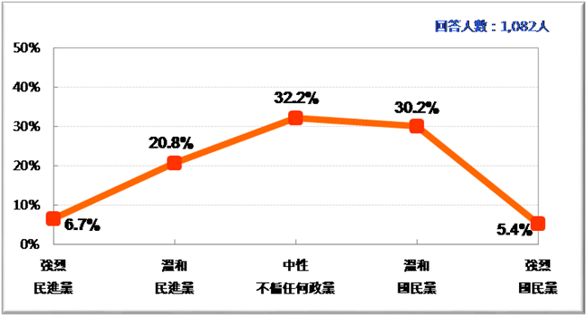 结果发现:6.7%强烈挺民进党,20.8%温和挺民进党,32.3%为中性选民;30.2%温和挺国民党,5.4%强烈挺国民党,4.6%不知道、拒答。换言之,最新民意显示,“九合一”选后台湾蓝绿势力的分布,大体上是27.5%绿,35.6%蓝,32%是中性或独立选民。