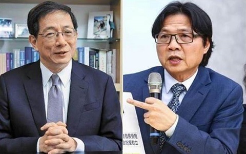 台当局前“教育部长”叶俊荣(右)宣布“勉予同意”管中闵(左)接任台大校长后闪辞。(图片来自台媒)