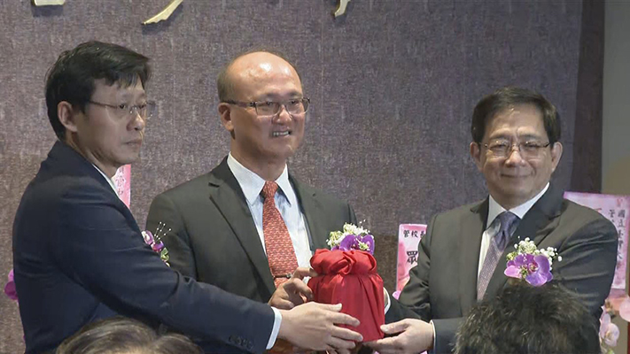 台大新校长管中闵上午接任台大校长,致词时引述美国前总统约翰逊的话“昨天的风雨过去了,明天才是我们奋斗的战场”。(图片来源:台湾《联合报》)
