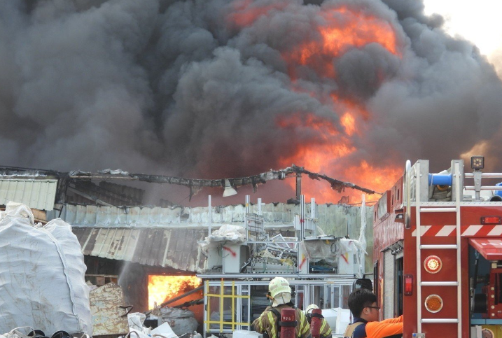台南善化回收场大火,1人受困。(图片来源:台湾《联合报》)