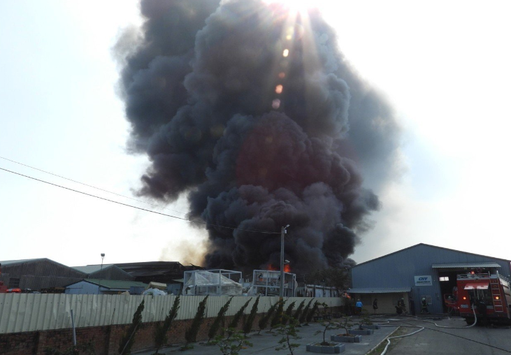 中国台湾网1月12日讯 据台湾《联合报》报道,12日,台南市善化区东势宅一家资源回收工厂接近中午的时候突然起火,窜出滚滚浓烟,几公里外都可看见。