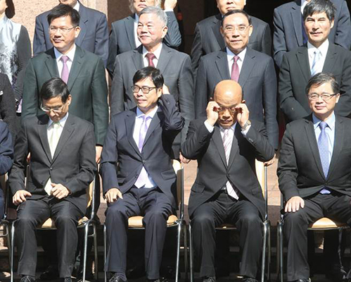台当局新任“行政院长”苏贞昌今就任后,“行政院”团队大合影。(图片来源:台湾“中时电子报”)