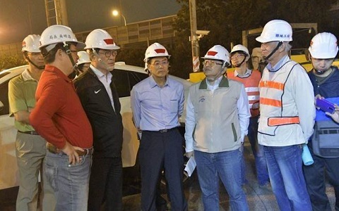 李四川(左二)带领高雄市工务团队施工画面。(图片来自台媒)