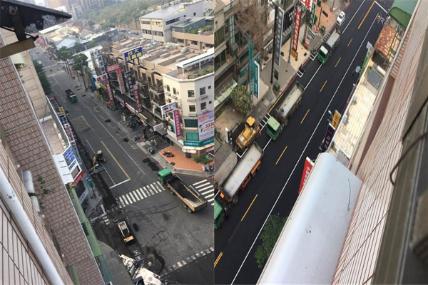 高雄网友贴马路对比图大赞韩市府:路见不平 马上铺平