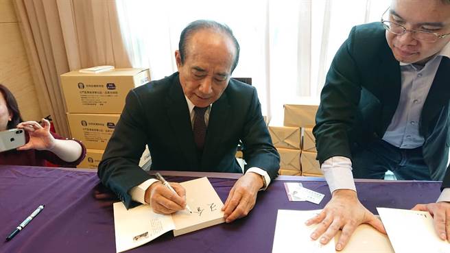 王金平参加国民党中常委在台南举办的尾牙宴,当场举办签书会。(图片来源:台湾“中时电子报”)