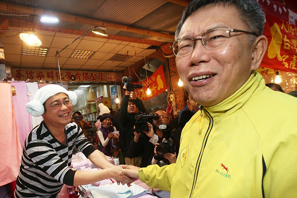 台北市长柯文哲昨晚(23日)接受电视台专访时指出,2018民进党大败就两个理由,分别是“白绿分手”和“韩流”。图为柯文哲昨日下午到台北迪化商圈走街、推广店家商品、发红包。(图片来源:台湾《联合报》)