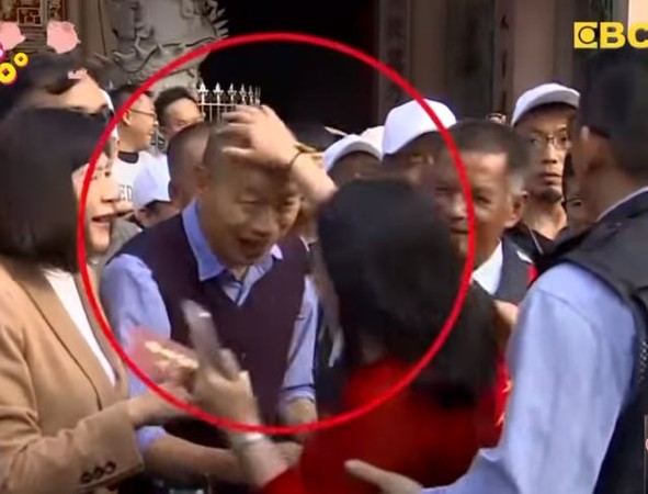 韩国瑜发红包被热情女粉"摸头" 笑回:回家要挨骂了!