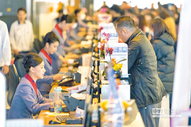 华航劳资协商破裂,机师工会罢工进入第3天,地勤员工在第一线向受影响旅客道歉赔不是。(图片来源:台湾“中时电子报”)