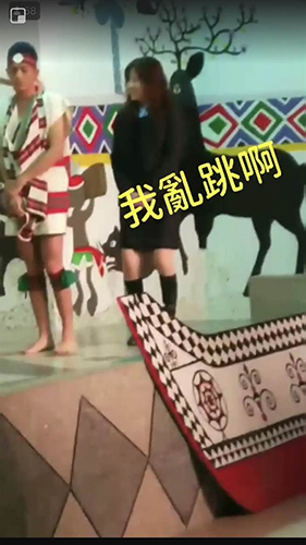 醉酒女子乱入基隆市少数民族舞蹈团的表演,还直呼“我乱跳啊!”。(图片取自台媒)