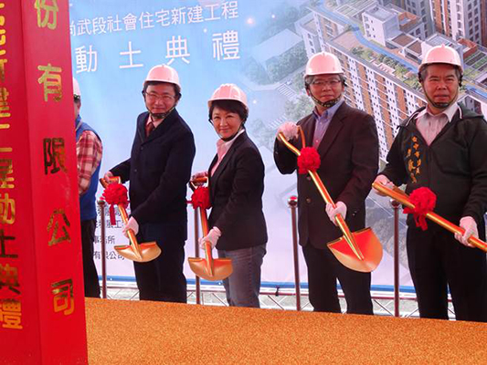 卢秀燕(左二)10日上午参加台中市东区尚武段社会住宅动土典礼。(图片来源:台湾“中时电子报”)