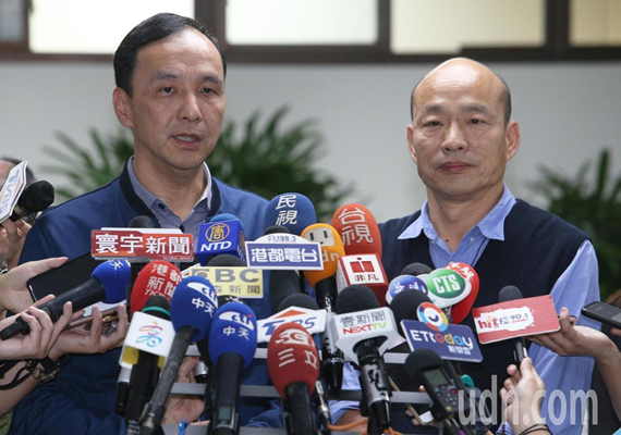 前新北市长朱立伦(左)专程到高雄拜会高雄市长韩国瑜(右)(图片来源:台湾“联合新闻网”)