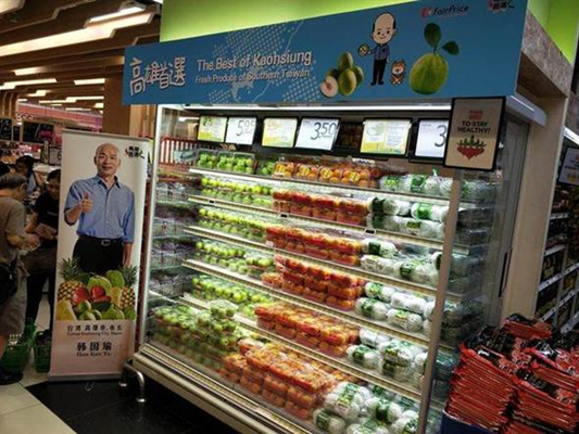 中国台湾网3月20日讯 据台湾“中时电子报”报道,高雄市长韩国瑜上任80余天,顺利与马来西亚粮食进出口总商会签下一亿元(新台币)订单、与新加坡最大超市FairPrice(职总平价合作社)签下3年通路采购合约,昨日(19日)更与广东潮州连都贸易公司签下价值10亿(新台币)农渔产品采购案。佳绩不断刷新的同时,有台湾网友发文,惊呼竟在新加坡超市看见“高雄首选”专区,还有韩等比立牌。